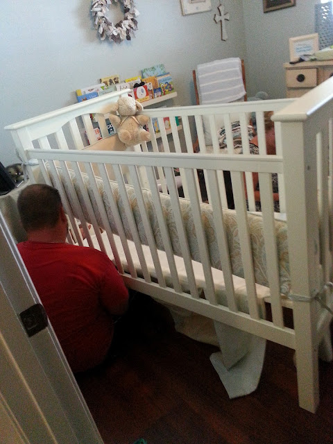 Love when my mom comes. She is so great about doing all the laundry, cleaning the house, and cleaning out B's old clothes, tidying up his room, etc. Things I just don't really have time for with an 8 month under me. AB also lowered the crib mattress AGAIN! It is officially the lowest it will go. Seems like we were just setting up the crib. Time goes by so fast!